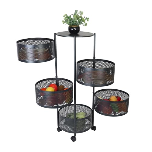 Chariot de Cuisine Relaxdays, 5 Compartiments, H x P : 90 x 34 cm, métal, 2 Freins, Chariot Noir