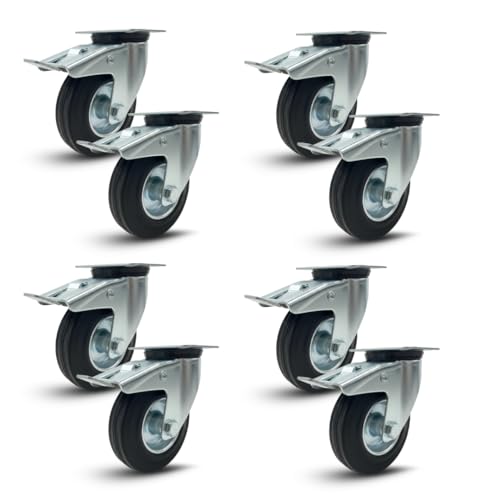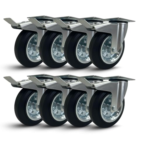 Roues pivotantes avec frein 125/100/80 mm roulettes silencieuses en caoutchouc, pour chariot à chargement lourd, appareils électroménagers, bancs de travail (100 mm, 8)