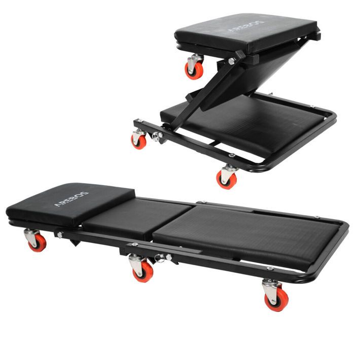 Chariot de garagiste et siège de mécanicien - Chariot de visite mécanicien pliable – 2en1 planche et siège - 6 roues pivotantes