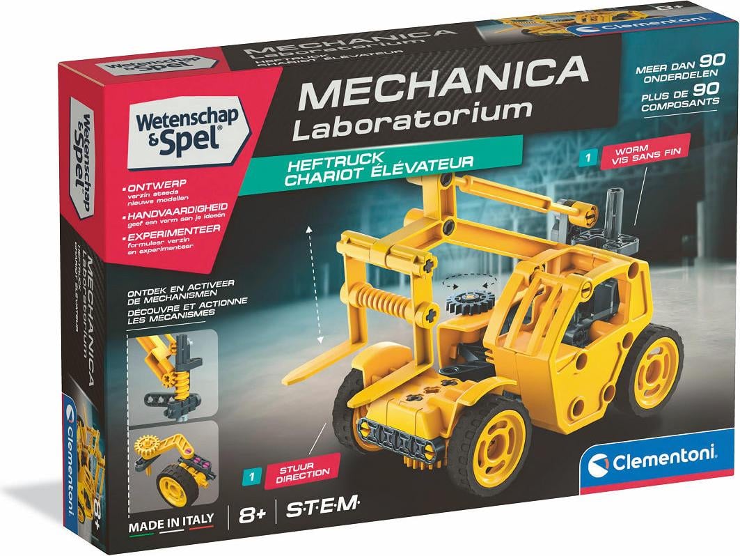 Clementoni | Chariot Élévateur à Construire pour Enfant 8 Ans+ |Mon Atelier de Mécanique |Jouet STEM | Plus de 90 Pièces | Bras Télescopique | Instructions 3D Incluses | Ideé Cadeau | Kit Méchanique