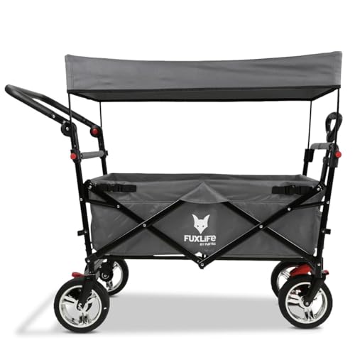 Fuxtec Chariot City Cruiser Gris, L'Original, Chariot de Jardin Pliable pour Enfants, Transport, Plage, Ville, Forêt, à Tirer ou à Pousser, Capacité De Charge 75 kg