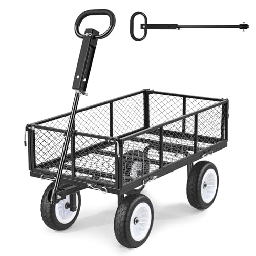 VEVOR Chariot de Jardin en Acier Max. 408,2 kg Chariot de Transport de Jardin pour Bois Terre Débris, Côtés Amovibles, Pneus PU Increvables 25,4 cm, Poignée Réglable, Compatible Tracteur Quad, Noir