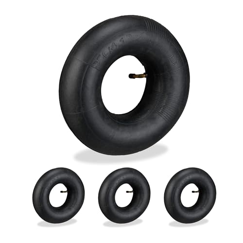 Relaxdays Chambre à air 3.50-4, Lot de 4, pour Diable, Chariot de Jardin, brouette, avec Valve, Caoutchouc, Noir