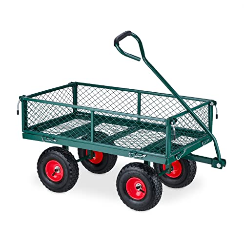 Relaxdays Chariot de Jardin Pratique, Roues pneumatiques, Parties latérales Pliables, Charge Max. 200 kg, Vert/Rouge