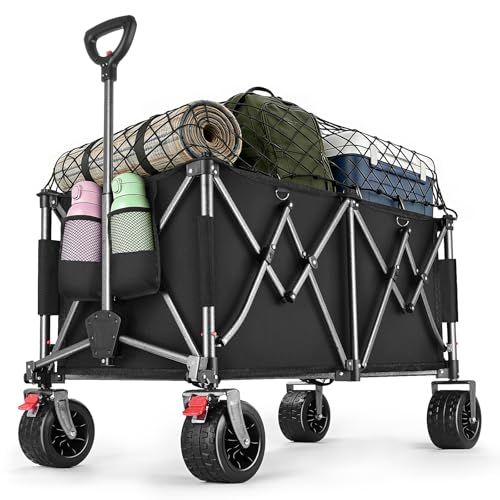 Beau Jardin Chariot de Jardinage 500LBS Chariot Plage avec Poignée Rétractable Tout Terrain Pliable avec Roues Avant Pivotantes de Jardin pour Le Camping en Plein Air - Noir