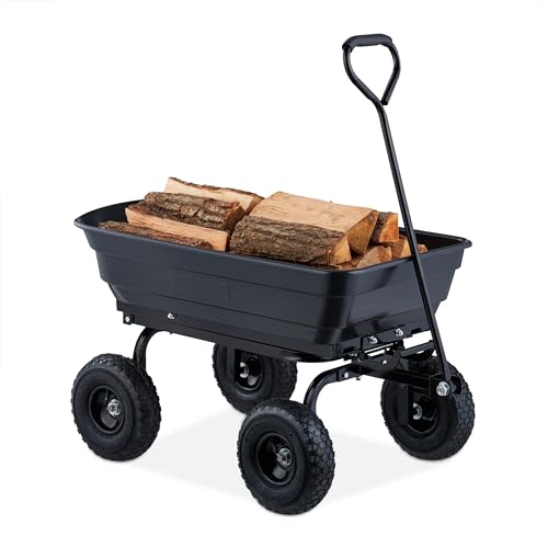 Relaxdays Chariot de Jardin avec Benne basculante, 4 Roues 3.50-4, Charge maximale : 250 kg, à Tirer, Noir