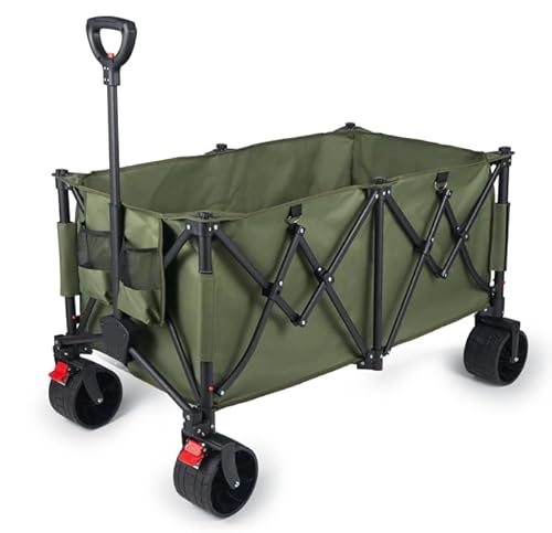 Sekey XXXL Chariot de Transport Pliable avec Freins 300L 200KG, Chariot de Plage Jardin avec Roues Extra Larges 17x10 cm, Pliable Breveté dans Quatre Directions SE4013, Vert Olive