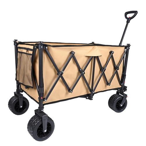YEAUPE PRO Chariot de Transport Pliable 140-240 l 120 kg avec Frein de stationnement, Pliage 4 Voies, Arrière Ouvert, Hauteur réglable pour Camping, Chariot de Plage, Jardin, Shopping, Kaki
