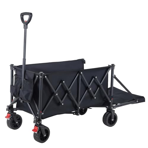 YEAUPE PRO Chariot de Transport Pliable 135-240 l 120 kg avec Frein de stationnement, Pliage 4 Voies, Arrière Ouvert, Hauteur réglable pour Camping, Chariot de Plage, Jardin, Shopping, Noir