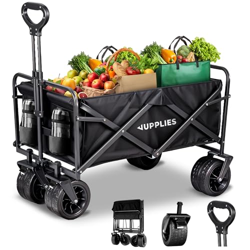 JUPPLIES Chariot Pliable à roulettes Grandes 150KG – Chariot de Jardin, Plage et Courses | Chariot de Transport Pliable Tout Terrain avec Poignée Télescopique et Tissu Oxford 600D Imperméable