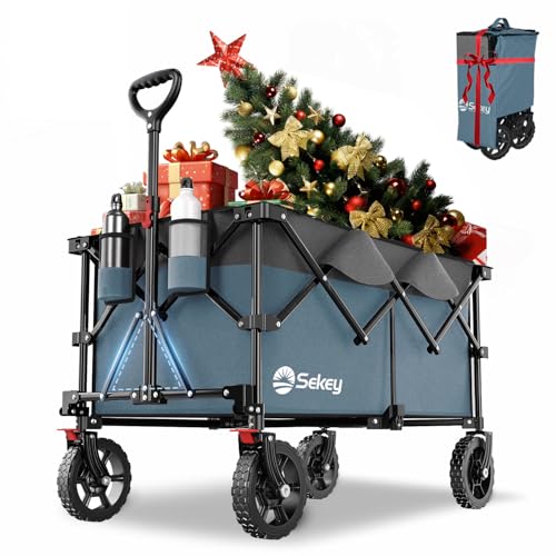 Sekey XXXL Chariot de Transport Pliable avec Freins 300L 200KG, Chariot de Plage Jardin avec Roues Extra Larges 17x10 cm, Pliable Breveté dans Quatre Directions SE4013, Bleu avec Gris