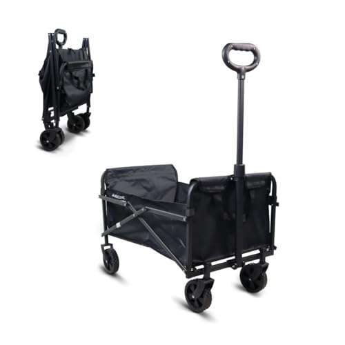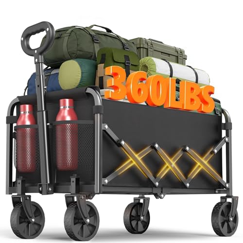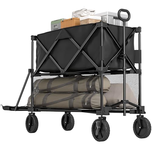 YEAUPE Pro Chariot de Transport Pliable 195-310 l 120 kg avec Frein de stationnement, Pliage 4 Voies, Arrière Ouvert, Hauteur réglable pour Camping, Chariot de Plage, Jardin, Shopping, Noir