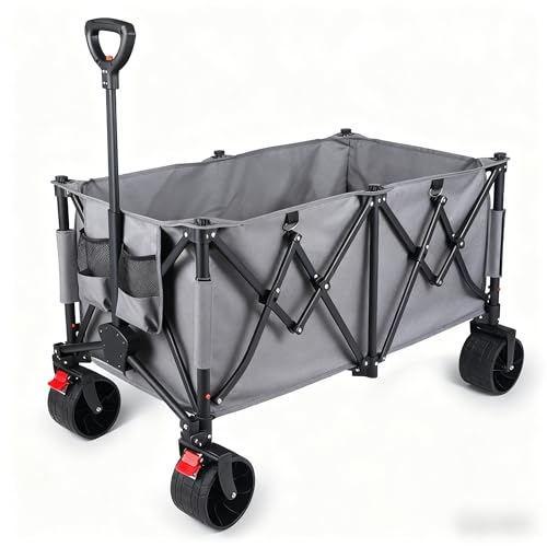 Sekey XXXL Chariot de Transport Pliable avec Freins 300L 200KG, Chariot de Plage Jardin avec Roues Extra Larges 17x10 cm, Pliable Breveté dans Quatre Directions SE4013, Rouge avec Gris