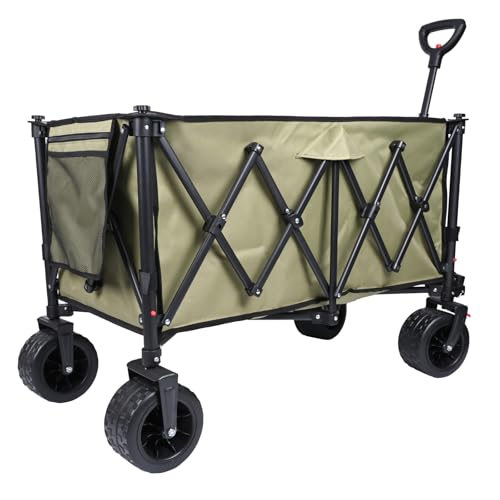 Sekey XXXL Chariot de Transport Pliable avec Freins 300L 200KG, Chariot de Plage Jardin avec Roues Extra Larges 17x10 cm, Pliable Breveté dans Quatre Directions SE4013, Vert Olive