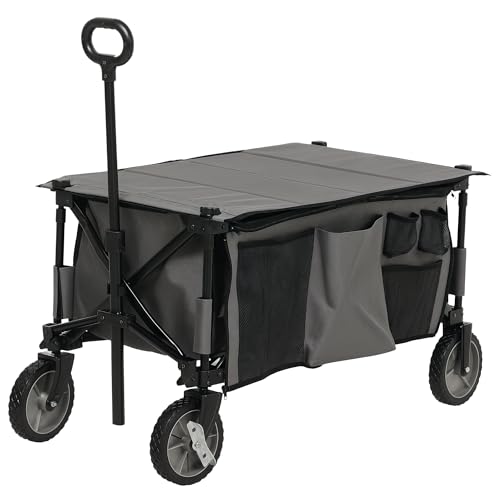 Outsunny Chariot de Plage, Chariot de Transport Pliable 4 Roues bâche Amovible poignée télescopique Inclinaison réglable Plateau Pliable et 5 Sacs de Rangement 108 x 55 x 93 cm Gris foncé