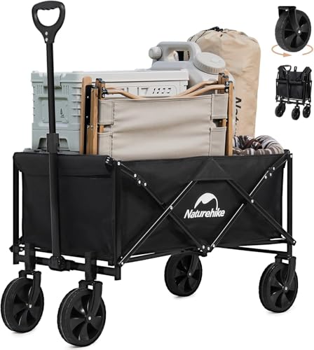 Naturehike Chariot de Transport Pliable 220l 200kg Chariot avec Roues Universelles et Poignée Réglable Chariot de Jardin pour Tous Les Terrains Outdoor Camping Shopping Noir