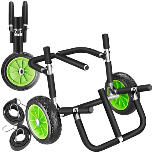 VEVOR Chariot de Kayak, Capacité de Charge 150 kg, Chariot de Transport Paddle Pliable Compact, avec Pneus en Caoutchouc Plein 38 cm, Pied de Support, Sangles d'Arrimage, pour Kayaks, Canoës, Paddles