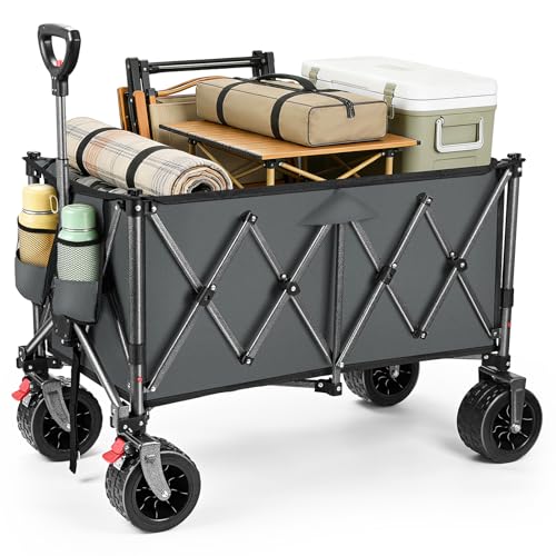 YEAUPE PRO Chariot de Plage 170L 150KG, Chariot de Transport Pliable avec Roues Pivotantes à 360°, Charrette pour Extérieur, Camping, Festival, Courses, Promenade, Kaki