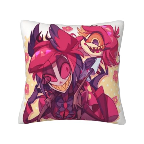 Zhongkaihua Hazbin Taie d'oreiller carrée en peluche Charlie Morningstar Vaggie Taie d'oreiller carrée en peluche pour canapé, lit (45,7 x 45,7 cm)