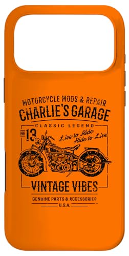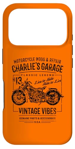 Charlie's Garage Design Moto Vintage pour nom Charlie Coque pour iPhone 17 Pro