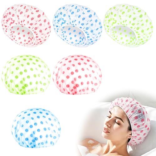 6 Bonnet de Douche Femme Imperméables Réutilisables Charlotte Cheveux Douche pour Enfants et Adultes avec Bandes Élastiques Confortables pour Bain Spa Maquillage Maison