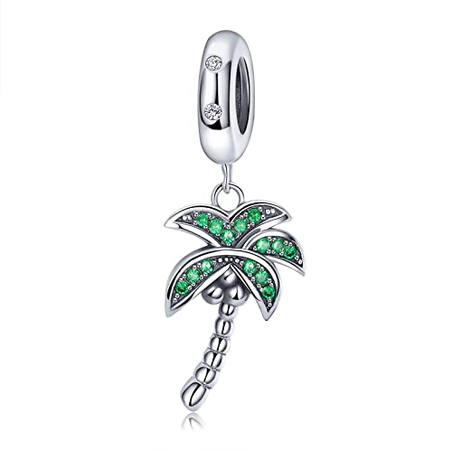 NINGAN Pendentif cocotier Charme en argent sterling 925 Compatible avec les bracelets pour femmes 5a Zircon Perles