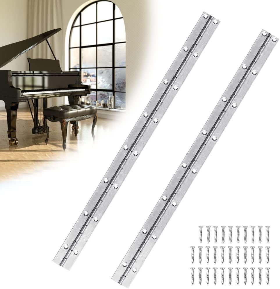 2 Pièces Charnière Piano, 38 cm Charnière à Tige pour Piano avec 24 Vis, Charnière à Piano en Métal, Charnière Longue à 16 Trous, Charnière pour Meubles, Placard, Piano, Fenêtre, Armoire