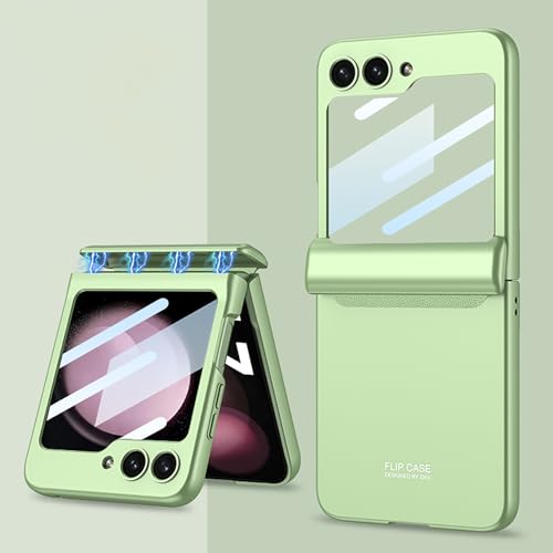 Hauw Coque pour Galaxy Z Flip5 5G,Étui de Téléphone Tout Compris à Charnière Magnétique Pliante avec Protection Arrière Petit Écran pour Samsung Galaxy Z Flip5 5G,Vert Clair
