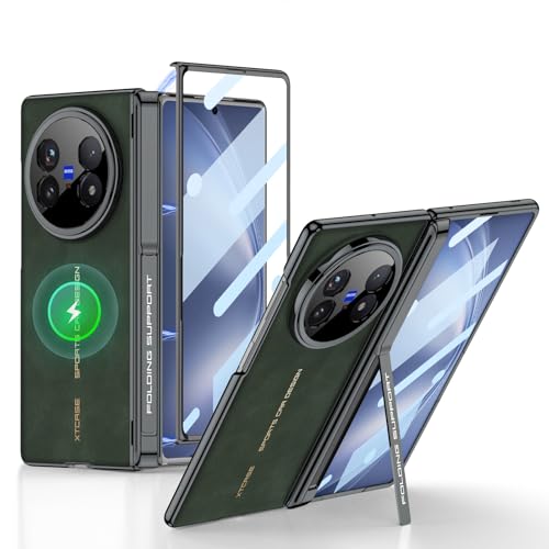 COQUE Étui pour Vivo X Fold 5,Charnière Pliante magnétique fantôme Membrane Support de Sacoche latérale Cuir Mat magnétique intégré-Vert