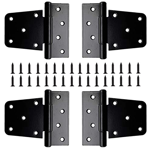 4 Pièces Robuste Charnières en T, Grange Détachées, pour Portes, Fenêtres, Abris de Jardin, Clôtures Extérieures, Inox, Portillon, Charniere Portail (Noir)