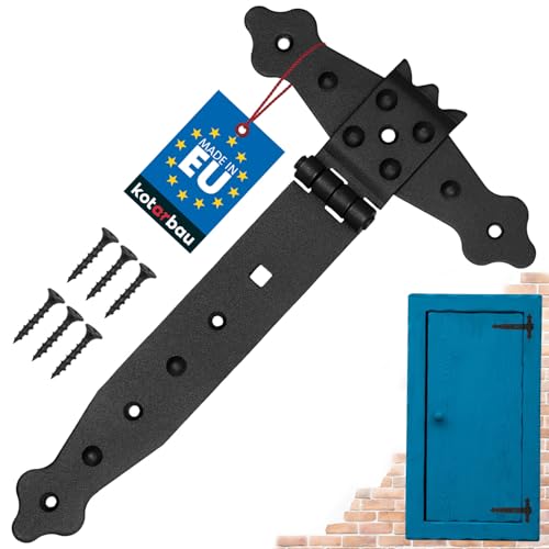 KOTARBAU® Charnière en T de 300 mm en Acier noir | Charniere Porte Lourde | Penture | Charniere Portail | Charnière Porte Lourde | Penture Volet Bois | Charnieres | Charniere Noir | Charnières