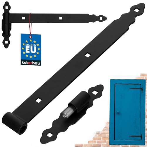 KOTARBAU® Charnière en T de 400 mm en Acier noir | Charniere Porte Lourde | Penture | Charniere Portail | Charnière Porte Lourde | Penture Volet Bois | Charnieres | Charniere Noir | Charnières