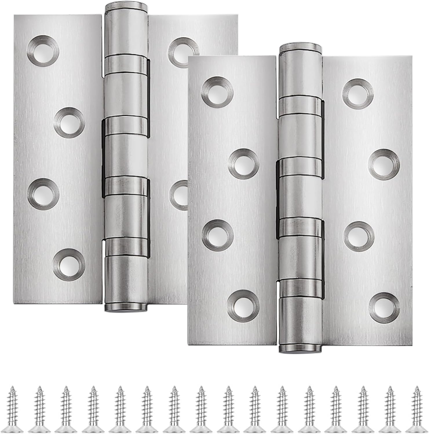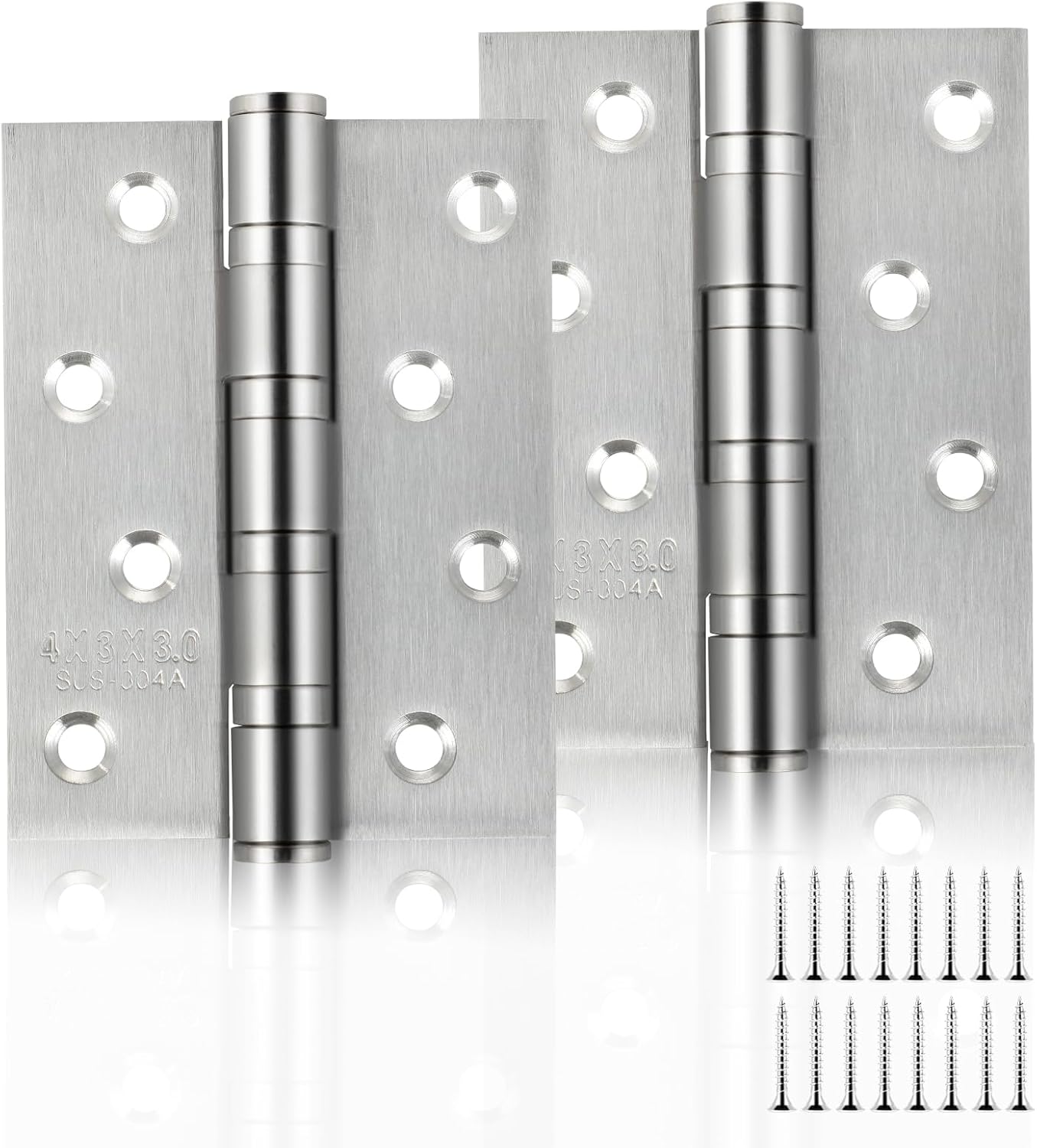 Charnière en acier inoxydable 2 Pièces, 10 cm Charnières à billes pour porte lourde, 8 trous Argent, pour portes d'entrée et placard Charnières pliables, intérieur et extérieur