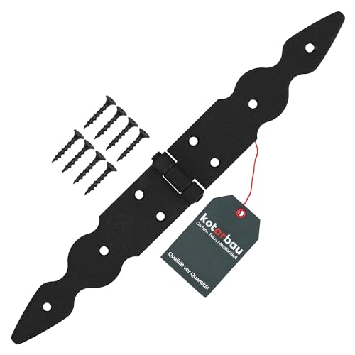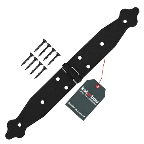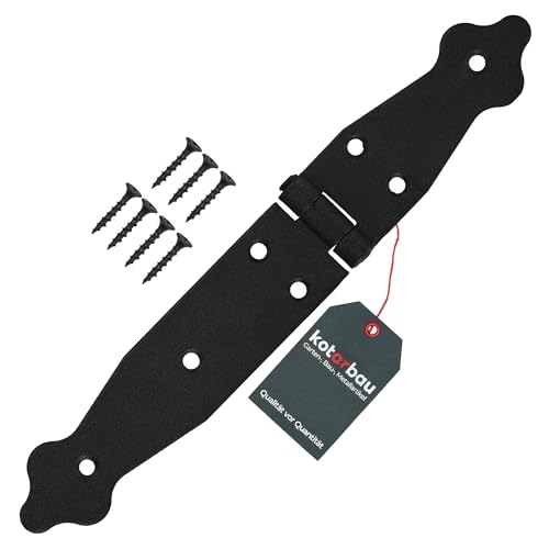 KOTARBAU® Charnière en T de 400 mm en Acier noir | Charniere Porte Lourde | Penture | Charniere Portail | Charnière Porte Lourde | Penture Volet Bois | Charnieres | Charniere Noir | Charnières