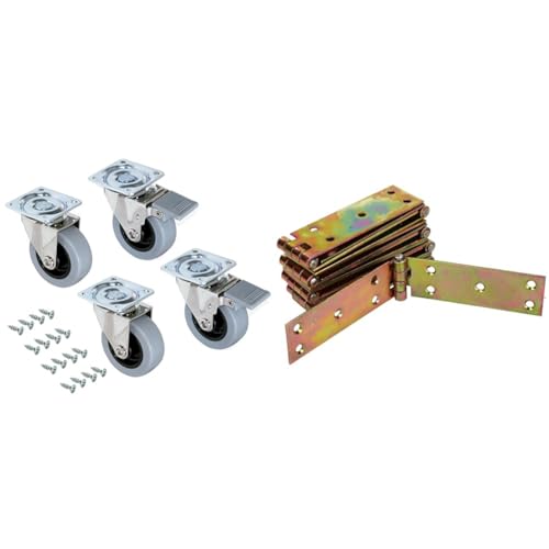 Emuca - Lot de 4 roulettes pivotantes pour Meuble Ø50mm avec Plaque de Fixation & KOTARBAU Charnière de caisse - 150 x 25 mm - Lot de 10 - Galvanisé - Charnières de porte - Charnières de placard