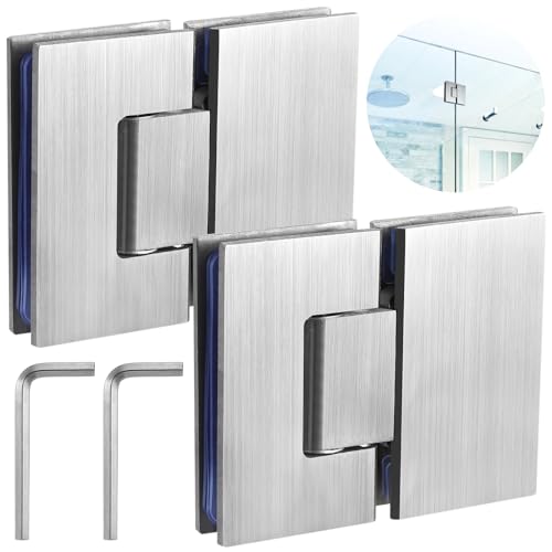 Lot de 2 charnière de porte de douche en verre à 180 degrés sans cadre pour 8 mm-12 mm, robustes charnières de salle de bain en acier inoxydable