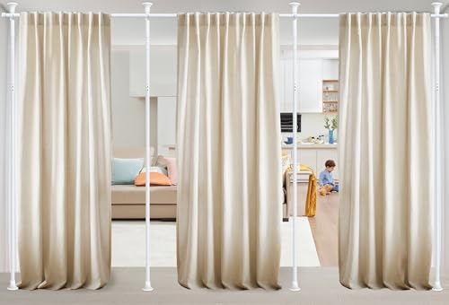 Tringle à rideaux sans perçage pour baie vitrée, réglable, robuste, de 2,5 cm, pour porte coulissante en verre, sans perçage, blanc