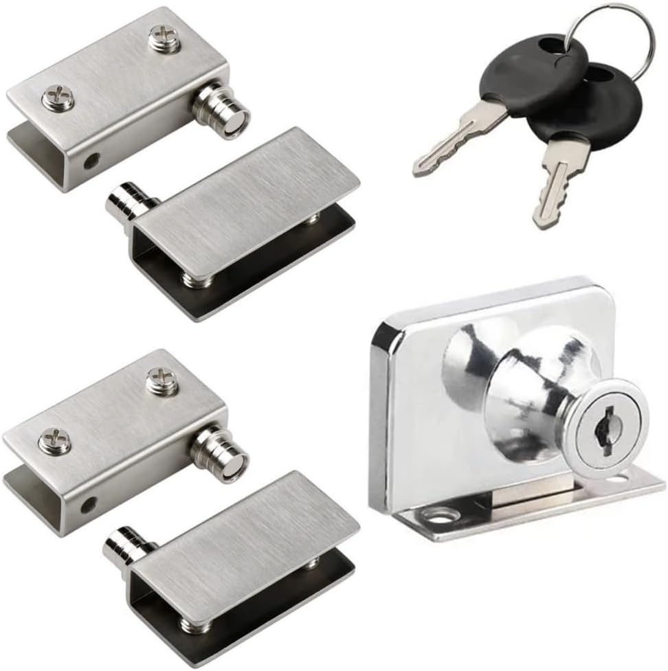 Besttoolifes Charnière de porte en verre en acier inoxydable avec loquet magnétique à double tête pour portes d'armoire en verre de 5 à 8 mm, pour une installation facile sans perçage, matériel