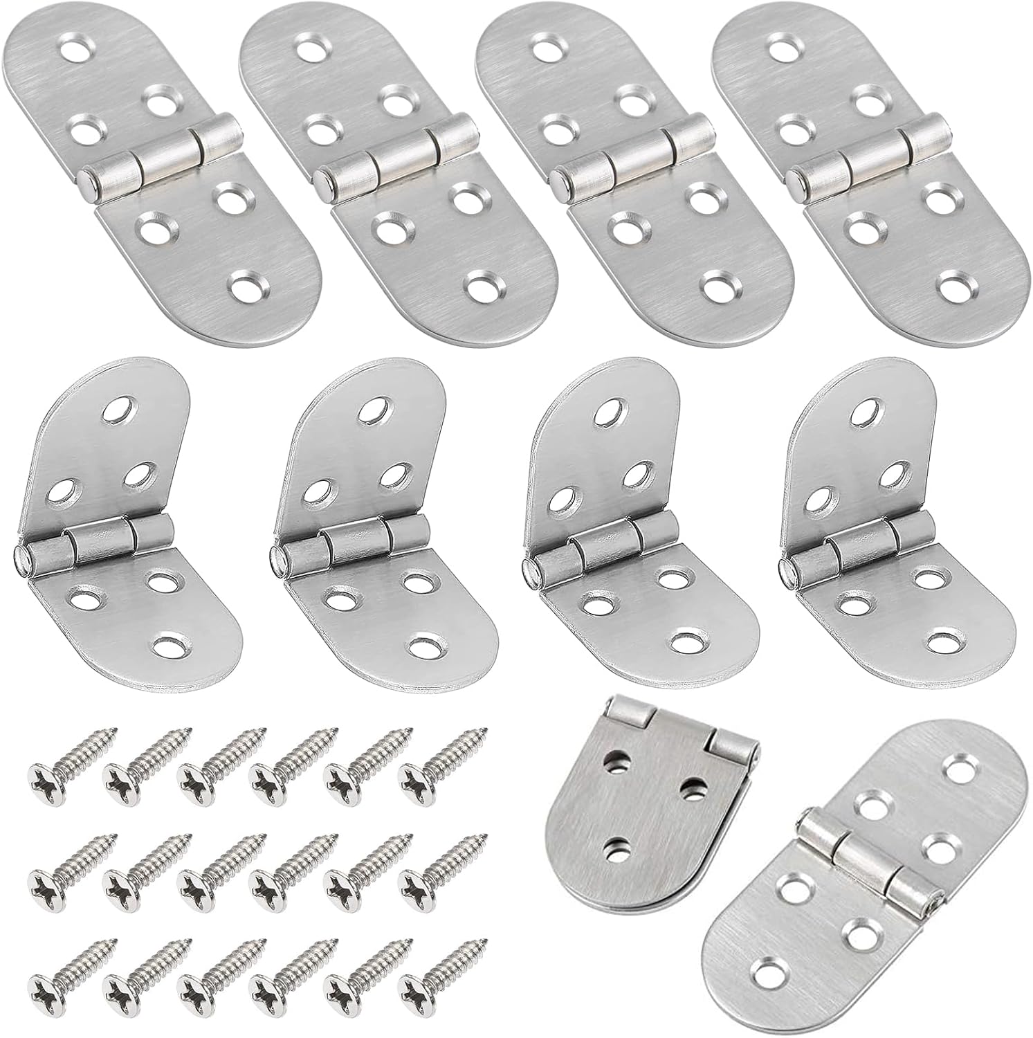 8 Pièces Charnière Pliante 180 Degrés, Connecteur de Charnière en Acier Inoxydable avec 48 Vis, Charnière de Table Pliante, Charnières de Meubles Rondes, pour Machine à Coudre, Table Pliante, Armoire