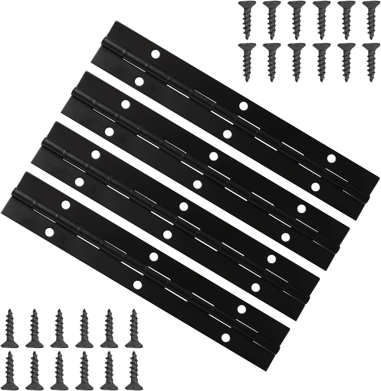 Lot De 4 Charnières De Piano Avec 24 Charnières De Piano En Métal, Charnière En Acier Inoxydable, Charnière De Piano Durable, Fenêtre De Bateau Avec Trous (Noir, 6 Pouces)