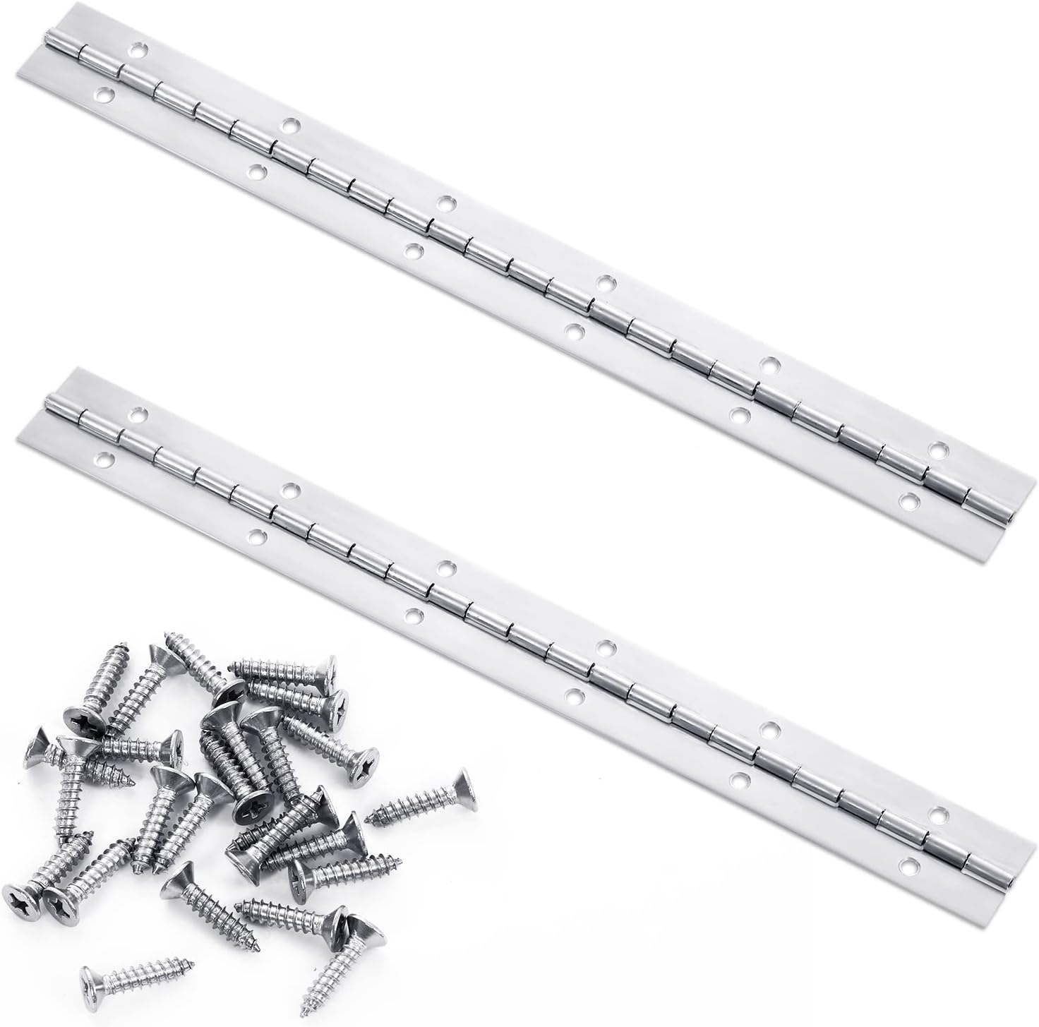 Lot de 2 charnières de piano en acier inoxydable de 30,5 cm, charnières continues avec trous, charnières de piano robustes en acier inoxydable poli pour armoire, porte, fenêtre, bateau, charnières