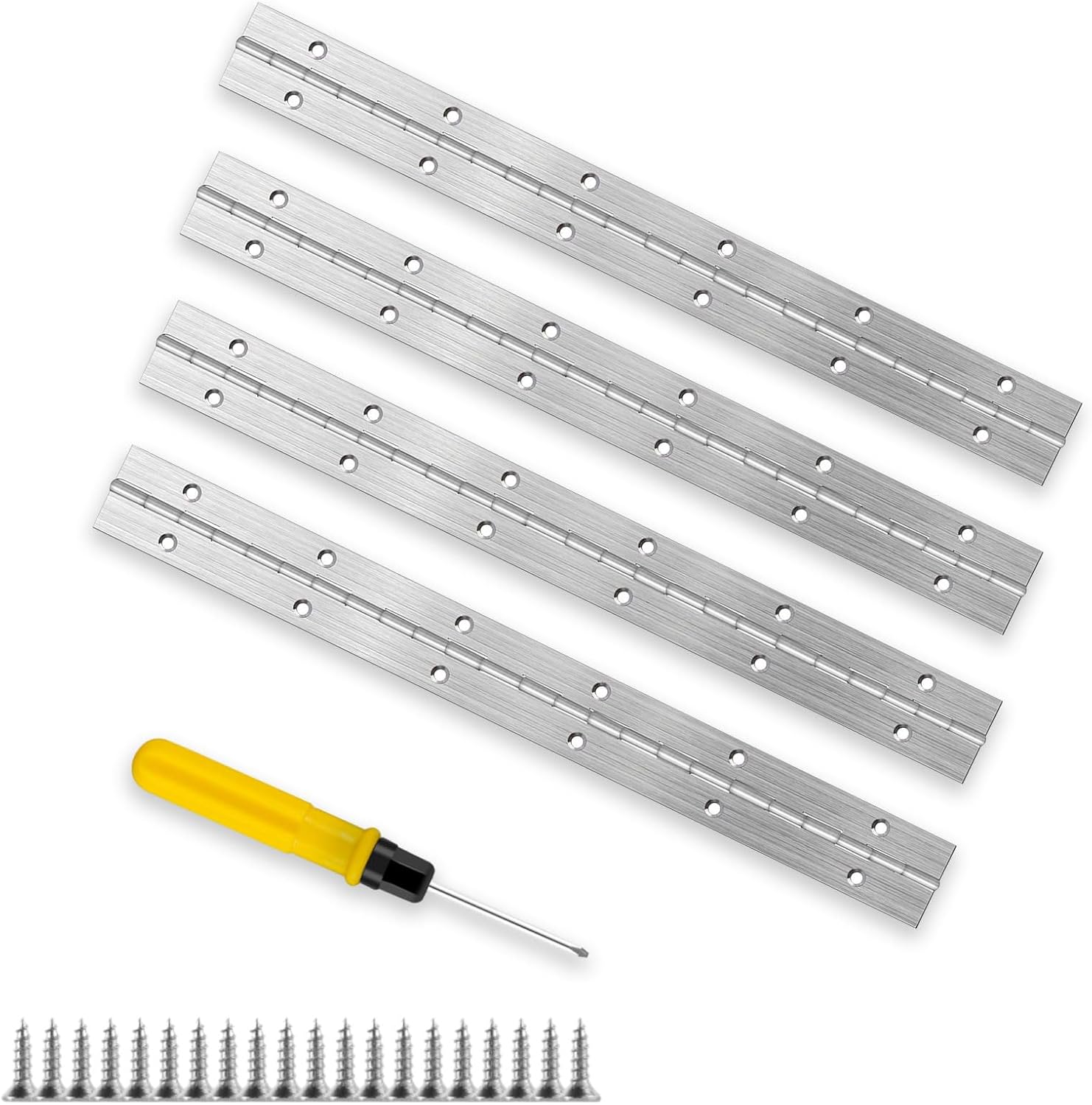 Lot de 4 charnières de piano en acier inoxydable de 30 cm avec 48 vis et tournevis pour piano, portes d'armoire, armoires, boîte de rangement