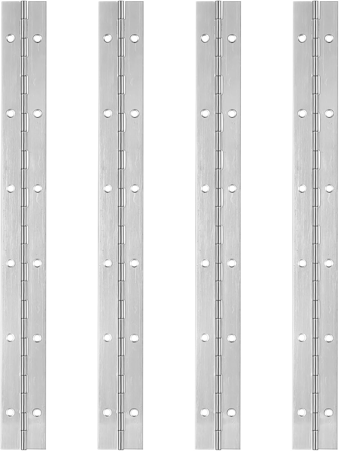 Lot de 4 Charnières Piano Inox 30cm - Pour Portes d'Armoires - 48 Vis Incluses - Acier Inoxydable Résistant (300x30x0,6mm)
