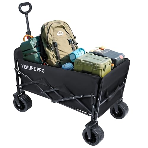 YEAUPE PRO Chariot de Plage Pliable Capacité Max. 170L 200KG, Chariot de Transport Poignée Réglable Charrette pour Extérieur Camping Pique, Idéal pour Camping, Jardin, Plage