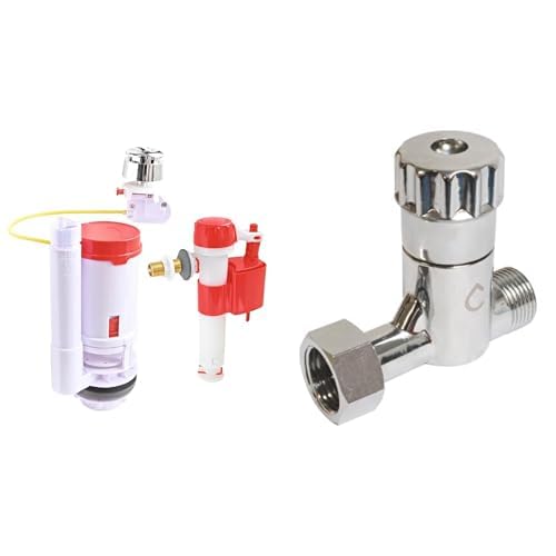 Bundle SOMATHERM FOR YOU - Chasse d'eau complète avec câble double chasse et robinet flotteur réversible, plus robinet d'arrêt droit anticalcaire, design moderne, facile à installer, garantie 10 ans