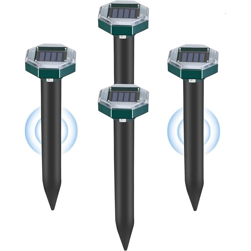 VURAHOME - Detaupeur Solaire 4pcs Anti Taupe Ultrason Repulsif Serpent Chasse Taupes Eliminer Prise Ultrason Souris Anti-Taupes Campagnols Nuisibles