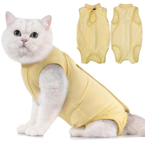 Avont Body Chat Post Opératoire Stérilisation, Combinaison de Récupération pour Chat Anti Léchage, Cat Recovery Suit après Chirurgie, Protection Post-Chirurgie, Contre Les Maladies de Peau -Jaune(S)