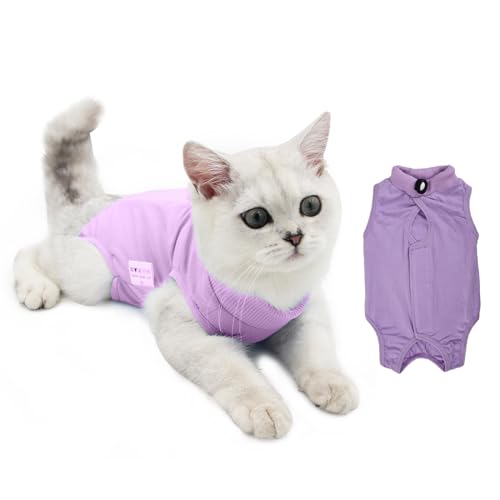 Avont Body Chat Post Opératoire Stérilisation, Combinaison de Récupération pour Chat Anti Léchage, Cat Recovery Suit après Chirurgie, Protection Post-Chirurgie, Contre les Maladies de Peau -Lavande(L)