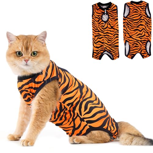 Avont Body Chat Post Opératoire Stérilisation, Combinaison de Récupération pour Chat Anti Léchage, Cat Recovery Suit après Chirurgie, Protection Post-Chirurgie, Contre Maladies de Peau -Tigre(MX)