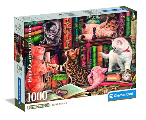 Clementoni – Puzzle 1000 Pièces Curious Whiskers – 14 Ans et + – Jeu de société détente, Chat illustré, Concentration – Idée Cadeau